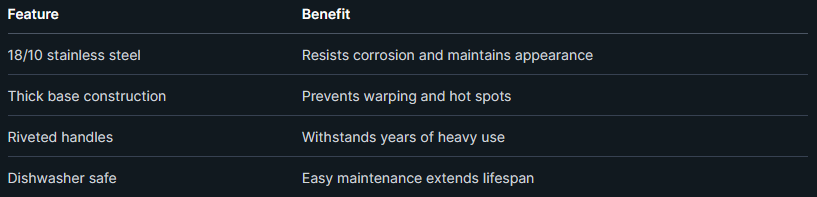 When you're picking out stainless steel pans, construction quality really matters. Tri-ply or multi-ply with an aluminum core gives you even heat, and things like handle design and pan weight make a surprising difference in daily use.