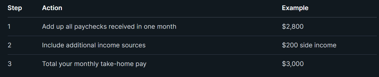 Track your income for a couple months—two or three is usually enough—to get a real average. If your income jumps around, calculate based on the lowest amount you expect to keep things steady.